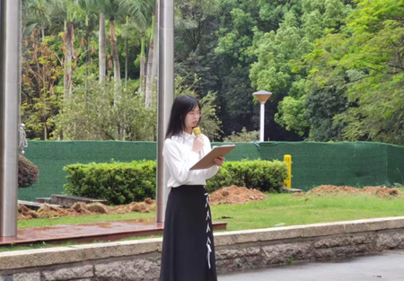 最后,2022级学前教育(师范)专业的学生代表陈绮琪同学发言。她向大家介绍了有关世界地球日的来历和主旨,号召同学们要积极保护地球资源环境,强调爱护地球环境人人有责,每个人都应当履行自己的义务,成为建设美丽世界的一份子。